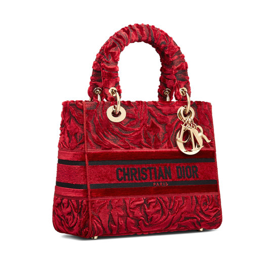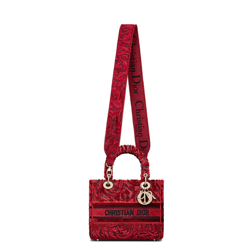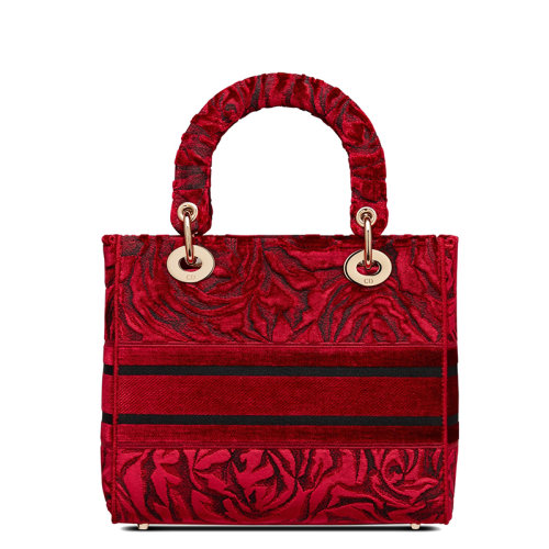 【包税】DIOR/迪奥 21秋冬新款 LADY D-LITE系列 女士中号红色玫瑰刺绣天鹅绒单肩斜挎手提戴妃包M0565OTHI_M02E
