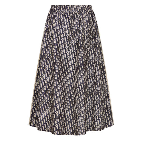 【包税】DIOR/迪奥 2021年早春新款 海军蓝色和米白色科技塔夫绸 Oblique 印花 女士半裙127J24A2970_X5803