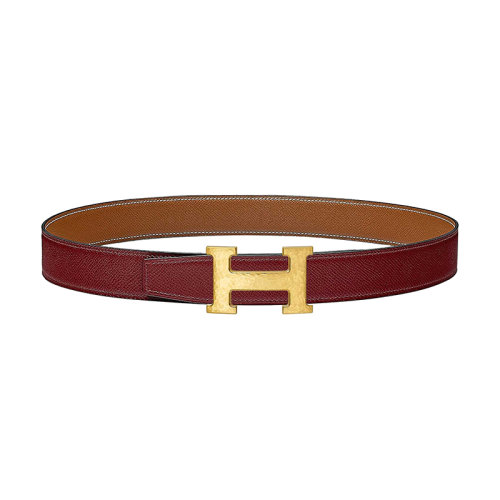 【包税】HERMES/爱马仕 红H /金小牛皮 锤打镀金金属皮带扣 女士双面皮带 32毫米H064549CC06/H075394CAAC090