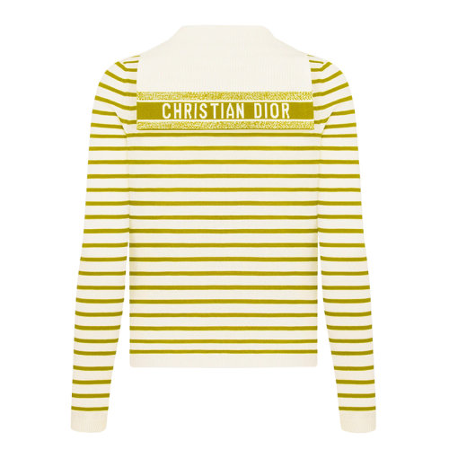 【包税】DIOR/迪奥 21年早秋新款 Dioriviera系列 女士绿色和白色IBIZA字样提花丝棉针织水手毛衣144S49IB603_X6862
