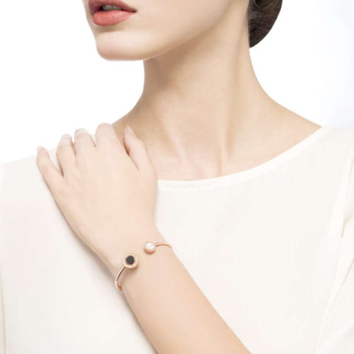 BVLGARI/宝格丽 女士玫瑰金色18K金珍珠母贝玛瑙和孔雀石元素翻转手链手环手镯 BR858422