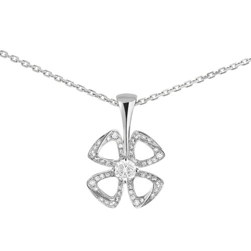 【包税】BVLGARI/宝格丽 21春夏新款FIOREVER系列 18K金白金镶嵌钻石镂空四叶草形状吊坠项链358157