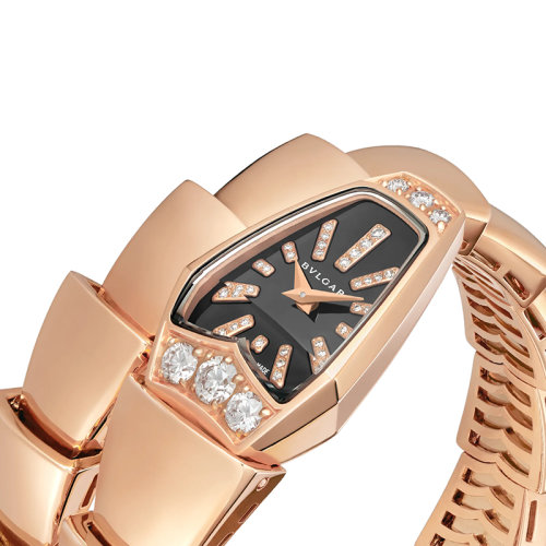 【包税】预定2-3周 BVLGARI/宝格丽 18 K金玫瑰金表壳和螺旋手链 明亮式切割钻石 黑色蓝宝石玻璃表盘 镶有钻石的索引SERPENTI珠宝石英手表 26毫米101788