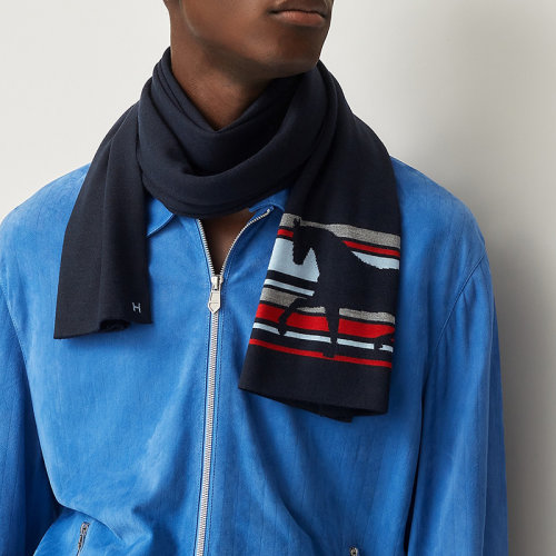 【包税】预订款1-2周 HERMES/爱马仕 21年春夏新款 男士海军/红色/天空色火热的马条纹图案羊绒真丝围巾H733767T03