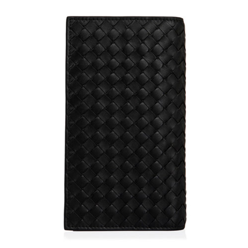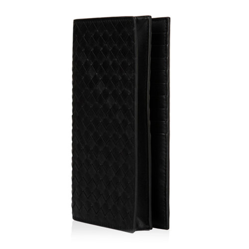 Bottega Veneta/葆蝶家 男士黑色羊皮手工编织长款对折钱夹钱包手拿包 316005-V4651-1000