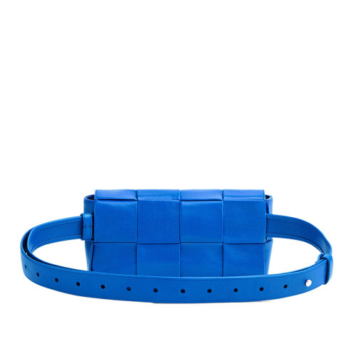 【包税】Bottega Veneta/葆蝶家 CASSETTE系列 男士迷你钴蓝色小牛皮双磁扣腰包651053VCQ724256