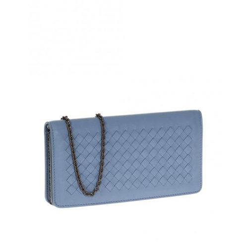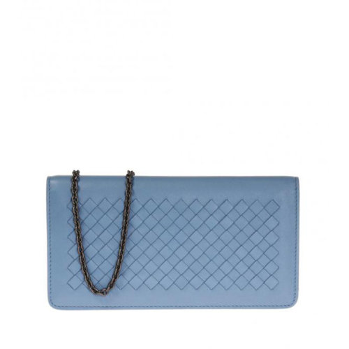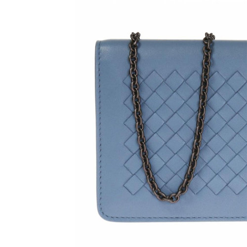 【包税包邮】Bottega Veneta/葆蝶家 宝缇嘉女包 女士蓝色羊皮时尚编织链条钱包 445153V001N4710