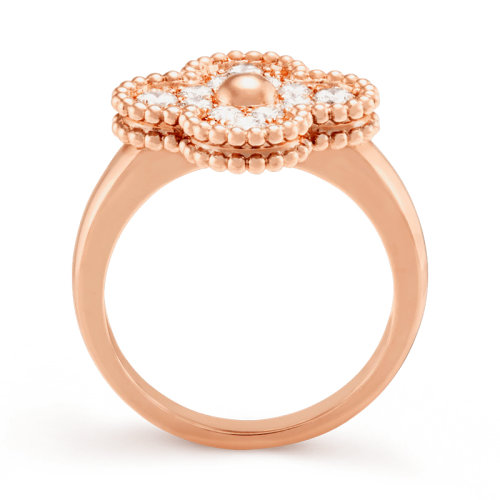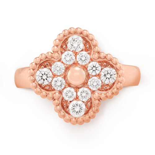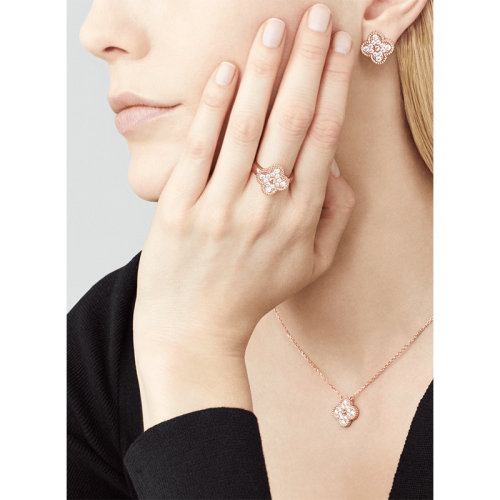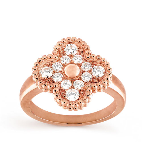 【包税】Van Cleef & Arpels/梵克雅宝 经典Sweet Alhambra® 系列 18K金玫瑰金镶钻四叶草戒指 VCARP2R400