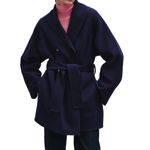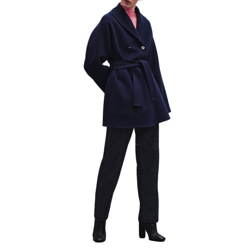 【包税】预订款1-2周 HERMES/爱马仕 21早秋新款 女士普鲁士蓝色双面羊绒豌豆大衣H1H0101DAH334