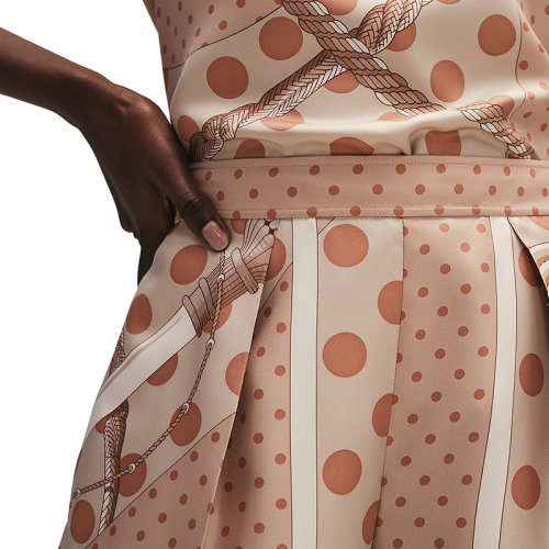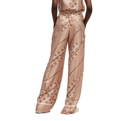 【包税】预订款1-2周 HERMES/爱马仕 21早秋新款 女士荞麦米色“Clic Clac à Pois”印花斜纹真丝睡衣式长裤H1H0403DA2F34