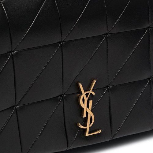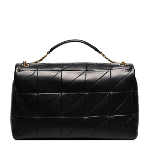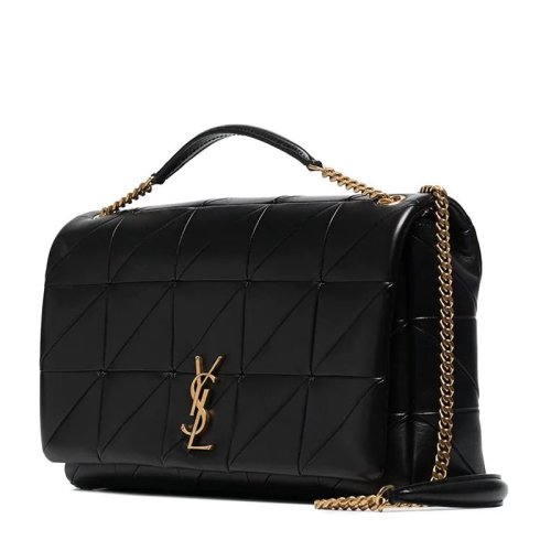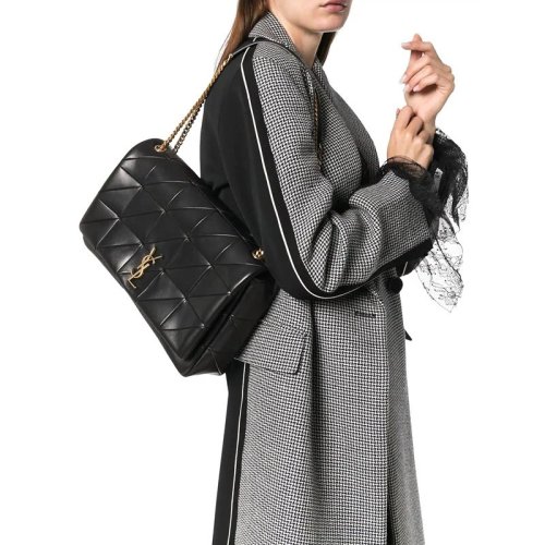 【国内现货】SAINT LAURENT PARIS/SAINT LAURENT PARIS 辛芷蕾同款/JAMIE系列女士黑色羊皮拼接纹饰金属字母LOGO徽标特大号单肩斜挎包