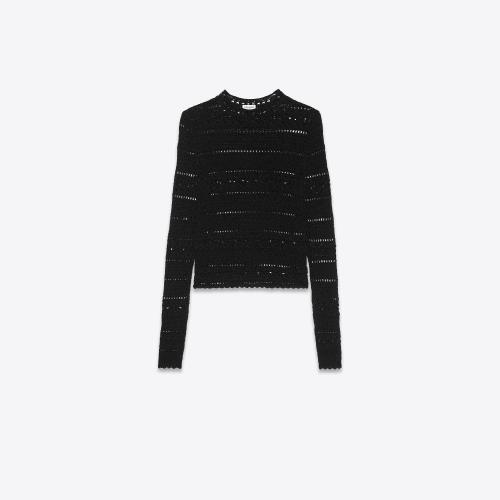【包邮包税】 YSL圣罗兰SAINT LAURENT 21年春夏 女士 针织衫 PULL AU CROCHET EN COTON 646381YA*w*V*w*S21 预定商品2-8周发货