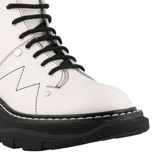 【包税】Alexander McQueen/亚历山大麦昆 女士亮泽小牛皮时尚系带短靴马丁靴皮靴女鞋 595469-WHQSG多色可选