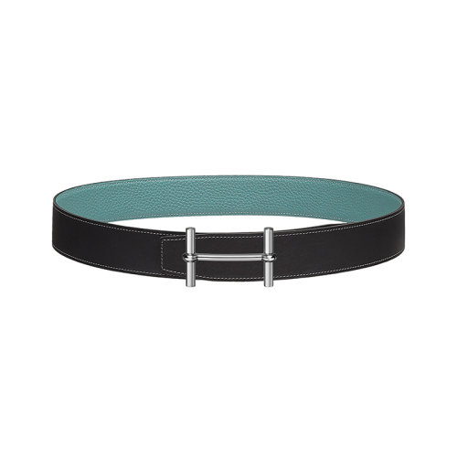 【包税】预订款1-2周 HERMES/爱马仕 H系列 石墨/天空蓝色荔枝纹小牛皮 男士双面银扣皮带38毫米H077938CK05/H077971CAAL090